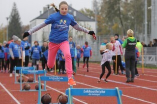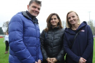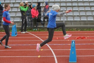 Gdańsk. Gdański Ośrodek Kultury Fizycznej, otwarcie nowego stadionu lekkoatletycznego. Nz (środek) Anna Rogowska.