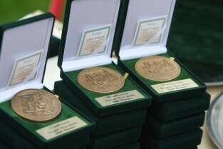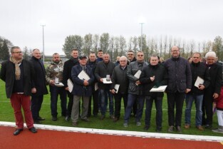 Gdańsk. Gdański Ośrodek Kultury Fizycznej, otwarcie nowego stadionu lekkoatletycznego. Nz. Dariusz Olszewski, Henryk Olszewski, Adam Korol i Prezydent Gdańska Paweł Adamowicz.
