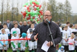 Gdańsk. Gdański Ośrodek Kultury Fizycznej, otwarcie nowego stadionu lekkoatletycznego. Nz Prezydent Gdańska Paweł Adamowicz.