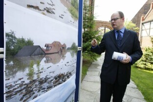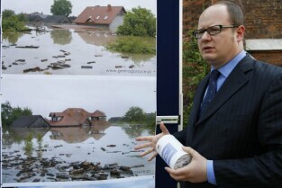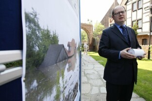 Konferencja prasowa, podczas której władze Gdańska ogłosiły program pomocy dla Gminy Gorzyce w woj. Podkarpackim, które ucierpiało podczas powodzi. Nz. Prezydent Gdańska Paweł Adamowicz