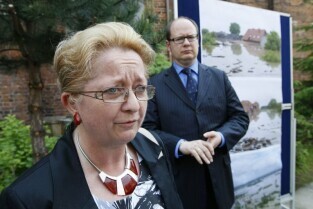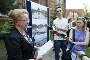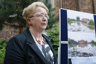 Konferencja prasowa, podczas której władze Gdańska ogłosiły program pomocy dla Gminy Gorzyce w woj. Podkarpackim, które ucierpiało podczas powodzi. Nz. Z-ca Prezydenta Gdańska Ewa Kamińska