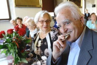 Gdańsk , Ratusz Głównego Miasta. Jubileusz Par Małżeńskich - "Złote Gody", podczas których Prezydent Gdańska Paweł Adamowicz wręczył medale za długoletnie pożycie małżeńskie.
