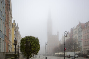 Gdańsk spowity w jesiennej mgle. Na zdjęciu Długi Targ