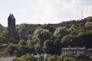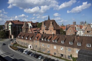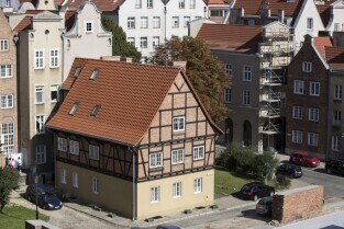 Biskupia Górka. Budynek dawnego schroniska młodzieżowego. Obecnie Laboratorium Kryminalistyczne Komendy Wojewódzkiej Policji w Gdańsku. Widok z dachu Teatru Szekspirowskiego