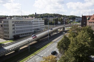 Estakada w ciągu Podwala Przedmiejskiego. Widok z dachu Teatru Szekspirowskiego