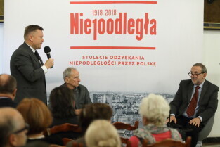 Gdańsk, Ratuszu Głównego Miasta. Ostatnia Gdańska Debata Obywatelska wpisana do pomorskiego programu Niepodległa 1918–2018 r. Gościem debaty „Kultura polska w kulturze świata 1918-2018” był profesor Andrzej Mencwel. Rozmowę poprowadził redaktor, Jerzy Sosnowski.