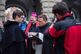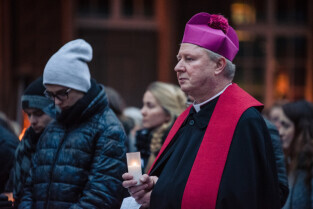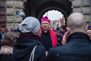 Gdańska Droga Krzyżowa ulicami miasta z Długiego Targu do Placu Solidarności, organizowana przez gdański Zakon Dominikanów. Nz. Biskup Wiesław Szlachetka