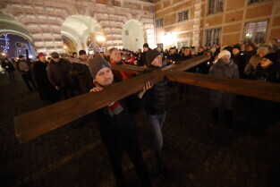 Gdańsk. Gdańska Droga Krzyżowa. Nz. Biskup Wiesław Szlachetka i Przeor Gdańskich Dominikanów O. Maciej Okoński.