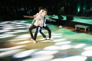 Gdańska Gala Sportu, podczas której nagrodzono wybitnych sportowców za ich osiągnięcia. Gdańsk, Filharmonia Bałtycka. Nz. pokaz piłkarskiej żonglerki