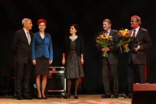 Gdańska Gala Sportu, podczas której nagrodzono wybitnych sportowców za ich osiągnięcia. Gdańsk, Filharmonia Bałtycka. Nz. zwycięzcy w kategorii "Partnerzy Gdańskiego Sportu 2011"