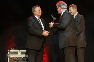 Gdańska Gala Sportu, podczas której nagrodzono wybitnych sportowców za ich osiągnięcia. Gdańsk, Filharmonia Bałtycka. Nz. nagroda w kategorii "Sportowa Impreza Roku 2011" za organizację Finału Ligi Światowej w siatkówce. Nagrodę odbiera Prezes PZPS Mirosław Przedpełski, którą wręczają Przewodniczący Rady Miasta Gdańska Bogdan Oleszek i Przewodniczący Gdańskiej Rady Sportu Wojciech Przybylski