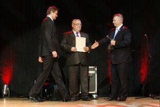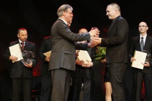 Gdańska Gala Sportu, podczas której nagrodzono wybitnych sportowców za ich osiągnięcia. Gdańsk, Filharmonia Bałtycka. Nz. nagroda w kategorii "Trener Roku 2011", którą otrzymuje Stanisław Chomski (LOTOS Wybrzeże Gdańsk)
