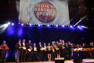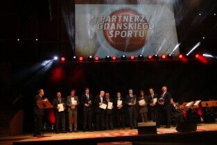 Gdańska Gala Sportu, podczas której nagrodzono wybitnych sportowców za ich osiągnięcia. Gdańsk, Filharmonia Bałtycka. Nz. zwycięzcy w kategorii "Partnerzy Gdańskiego Sportu 2011". Nz. występ Marcina Dańca, który uświetnił galę