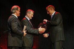 Gdańska Gala Sportu, podczas której nagrodzono wybitnych sportowców za ich osiągnięcia. Gdańsk, Filharmonia Bałtycka. Nz. zwycięzcy w kategorii "Partnerzy Gdańskiego Sportu 2011" dla Sietom Sp. z o.o., którą odbiera Przewodniczący Rady Nadzorczej Tadeusz Tomczak, a wręczają Z-ca Prezydenta Gdańska Andrzej Bojanowski i Przewodniczący Komisji Sportu i Turystyki RMG Mirosław Zdanowicz (po lewej)