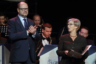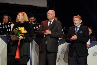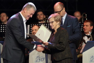 Gdańsk, Hala Widowiskowo-Sportowa AWFiS. Gdańska Gala Sportu. Najlepsi sportowcy 2017 roku nagrodzeni. Nz. Prezydent Gdańska Paweł Adamowicz i Danuta Wałęsa.