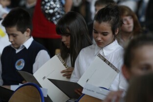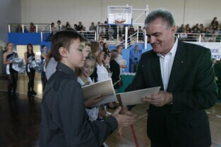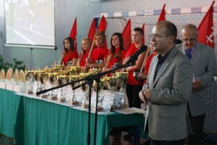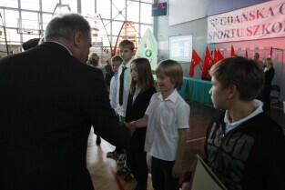 Gdańsk Gala Sportu Szkolnego. Z-ca Prezydenta Gdańska Maciej Lisicki i Przewodniczący Rady Miasta Gdańska Bogdan Oleszek wręczyli nagrody oraz stypendia gdańskim uczniom za wyjątkowe osiągnięcia w sporcie szkolnym. Gdańsk Chełm, Gimnazjum nr 3.