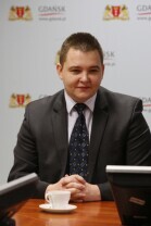 Podpisanie umowy na realizację projektu "Gdańskiej Platformy Edukacyjnej", w ramach którego powstaną m.in. e-sekretariaty i e-dzienniki . Gdańsk, Urząd Miejski. Nz. Dyrektor Działu Handlowego Otago Sp. z o.o. Jakub Buczyło