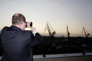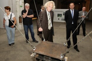 Stocznia Gdańska, Hala B90. Posiedzenie Gdańskiej Rady Kultury połączone ze zwiedzaniem wystawy w ramach festiwalu Alternativa. Nz. Prezydent Gdańska Paweł Adamowicz