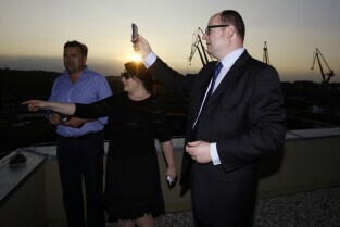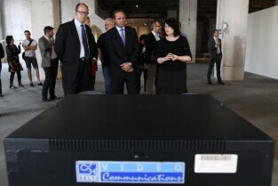 Stocznia Gdańska, Hala B90. Posiedzenie Gdańskiej Rady Kultury połączone ze zwiedzaniem wystawy w ramach festiwalu Alternativa. Nz. od lewej: Prezydent Gdańska Paweł Adamowicz, Marszałek Woj. Pomorskiego Mieczysław Struk, Dyrektor Artystyczna festiwalu Alternativa Aneta Szyłak