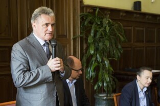 Gdańsk, Nowy Ratusz. Inauguracyjne posiedzenie Gdańskiej Rady Oświatowej kadencji na lata 2015-2018. Nz. Przewodniczący Rady Miasta Gdańska Bogdan Oleszek