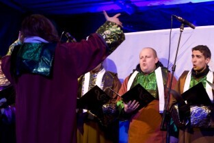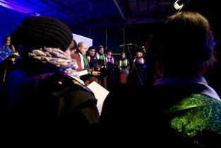 Gdańska Wigilia. Gdańsk, Długi Targ. Nz. Chór Sceny Muzycznej Gdańskiego Archipelagu Kultury