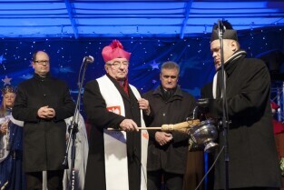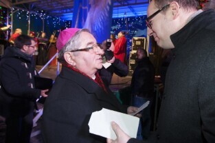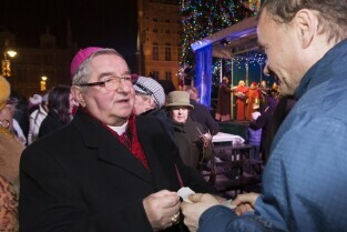 Gdańska Wigilia na Długim Targu, podczas której gdańszczanie wysłuchali życzeń i podzielili się opłatkiem. Nz. Metropolita Gdański Abp Sławoj Leszek Głódź