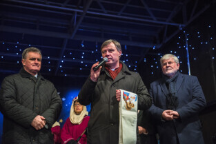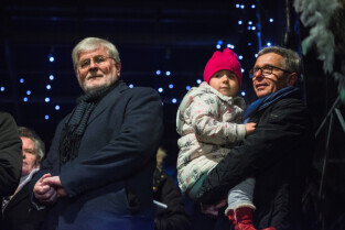 Tradycyjna coroczna Gdańska Wigilia odbyła się na Długim Targu. Nz. (od lewej) Bogdan Oleszek - Przewodniczący Rady Miasta, Proboszcz Bazyliki Mariackiej Ks. Ireneusz Bradtke, Radny Marek Bumblis
