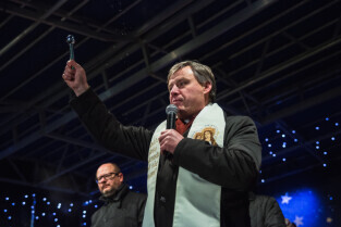 Tradycyjna coroczna Gdańska Wigilia odbyła się na Długim Targu. Nz. Proboszcz Bazyliki Mariackiej Ks. Ireneusz Bradtke