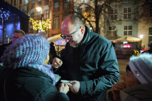 Tradycyjna coroczna Gdańska Wigilia odbyła się na Długim Targu. Nz. Radny Andrzej Kowalczys