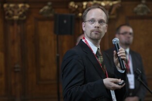 "Gdańska debata o starości" - konferencja poświęcona działaniom na rzecz seniorów oraz sytuacji demograficznej w mieście. Gdańsk, Dwór Artusa. Nz. Panel pt. "Dobre Praktyki w kontekście działań na rzecz seniorów". Nz. Dyrektor Fundacji Regionalne Centrum Informacji i Wspomagania Organizacji Pozarządowych w Gdańsku Jerzy Boczoń