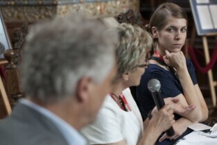 "Gdańska debata o starości" - konferencja poświęcona działaniom na rzecz seniorów oraz sytuacji demograficznej w mieście. Gdańsk, Dwór Artusa. Nz. Panel pt. "Dobre Praktyki w kontekście działań na rzecz seniorów". Nz. Redaktor Naczelna Magazynu "Miasta" Marta Żakowska