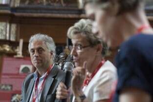 "Gdańska debata o starości" - konferencja poświęcona działaniom na rzecz seniorów oraz sytuacji demograficznej w mieście. Gdańsk, Dwór Artusa. Nz. Panel pt. "Dobre Praktyki w kontekście działań na rzecz seniorów". Nz. prowadzący debatę Adam Hlebowicz