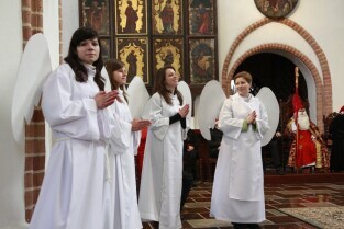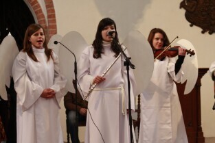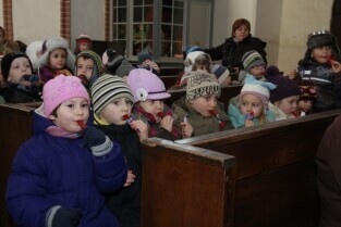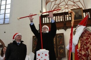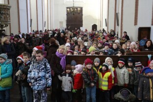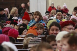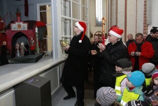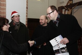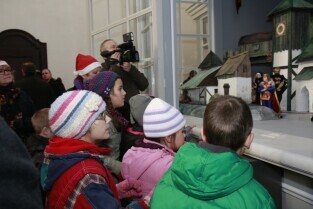 Gdańsk, kościół św. Trójcy. Uroczyste uruchomienie po gruntownej przebudowie gdańskiej szopki połączone z happeningiem "Popiszczmy Razem!"