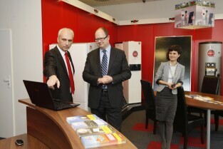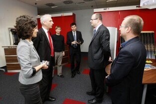 Gdańsk Przymorze. Wizyta Prezydenta Gdańska Pawła Adamowicza w ostatnio otwartym Gdańskim Inkubatorze Przedsiębiorczości. Nz. siedziba firmy 2 SUN