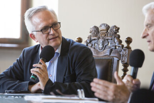 Obchody 500-lecie Reformacji. Debata w ramach Gdańskiego Kongresu Reformacyjnego. Gdańsk, Ratusz Głównego Miasta. Nz. prof. Jerzy Buzek