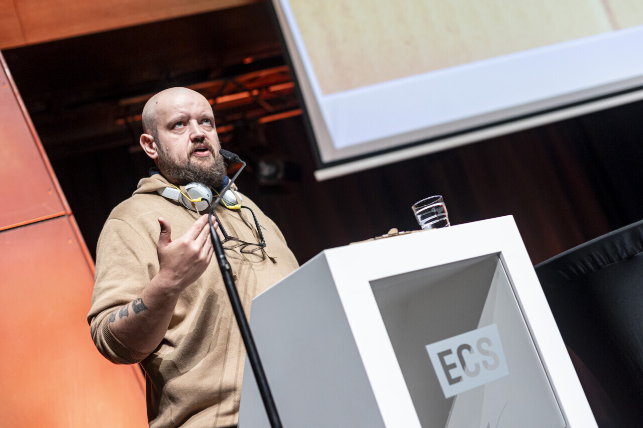 Gdańsk. W Europejskim Centrum Solidarności trwa Gdański Tydzień Demokracji. Nz. wykład Michała Fedorowicza