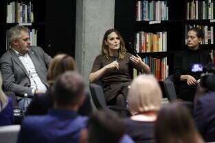 Gdańsk. Gdański Tydzień Demokracji. Debata I WOJNA TO STRACH, BÓL I... DEZINFORMACJA.JAK OBRONIĆ SIĘ PRZED FAKE NEWSEM? z udziałem: Bartosz Wieliński, Gazeta Wyborcza, Katarzyna Górniak, TVN24, Agnieszka Lichnerowicz, TOK FM i Karolina Zbytniewska, Euractiv.pl. Debatę poprowadził Grzegorz Kubicki Gazeta Wyborcza.