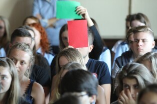 Gdańsk. W ramach Gdańskiego Tygodnia Demokracji w VIII LO odbyła się Debata Oksfordzka. Tezą debaty było: Przybycie Uchodźców do Unii Europejskiej Wzmocni jej Pozycję.