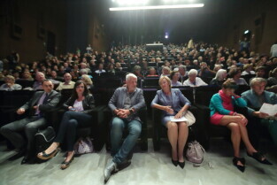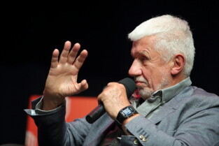 Gdańsk. Europejskie Centrum Solidarności. Gdański Tydzień Demokracji. Pierwsza debata "Dokąd zmierzamy?" Nz. Prof. Jerzy Bralczyk.