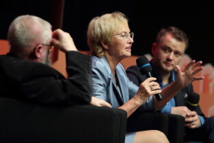 Gdańsk. Europejskie Centrum Solidarności. Gdański Tydzień Demokracji. Pierwsza debata "Dokąd zmierzamy?" Nz. Lena Kolarska-Bobińska.