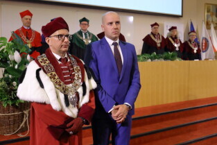 Gdańsk, Gdański Uniwersytet Medyczny. Inauguracja roku akademickiego 2019/2020. Nz. Rektor prof. dr hab. Marcin Gruchała i Sławomir Gadomski, podsekretarz stanu w Ministerstwie Zdrowia.
