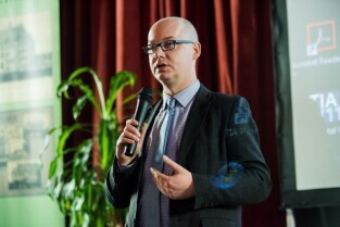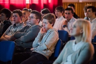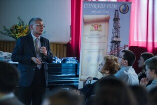 Gdańsk, ul. Piramowicza. Gdański tydzień zawodowca. CONRADINUM. Konferencja dla gimnazjalistów "Przemysł okrętowy - fascynujące miejsce pracy". Nz Grzegorz Kryger, zastępca dyrektora ds. edukacji w Urzędzie Miejskim w Gdańsku