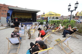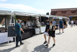 Gdańsk.Gdańskie Dni Kaszubskie 2022. Nz. Stoiska gastronomiczne i koncert na Ołowiance.