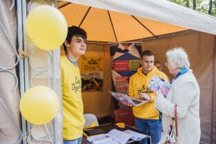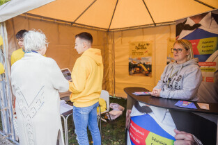 Gdańsk, Park Oruński. Gdańskie Dni Seniora 2022. Nz. Dawid Jastrzębski – prezes Regionalnego Centrum Wolontariatu w Gdańsku
