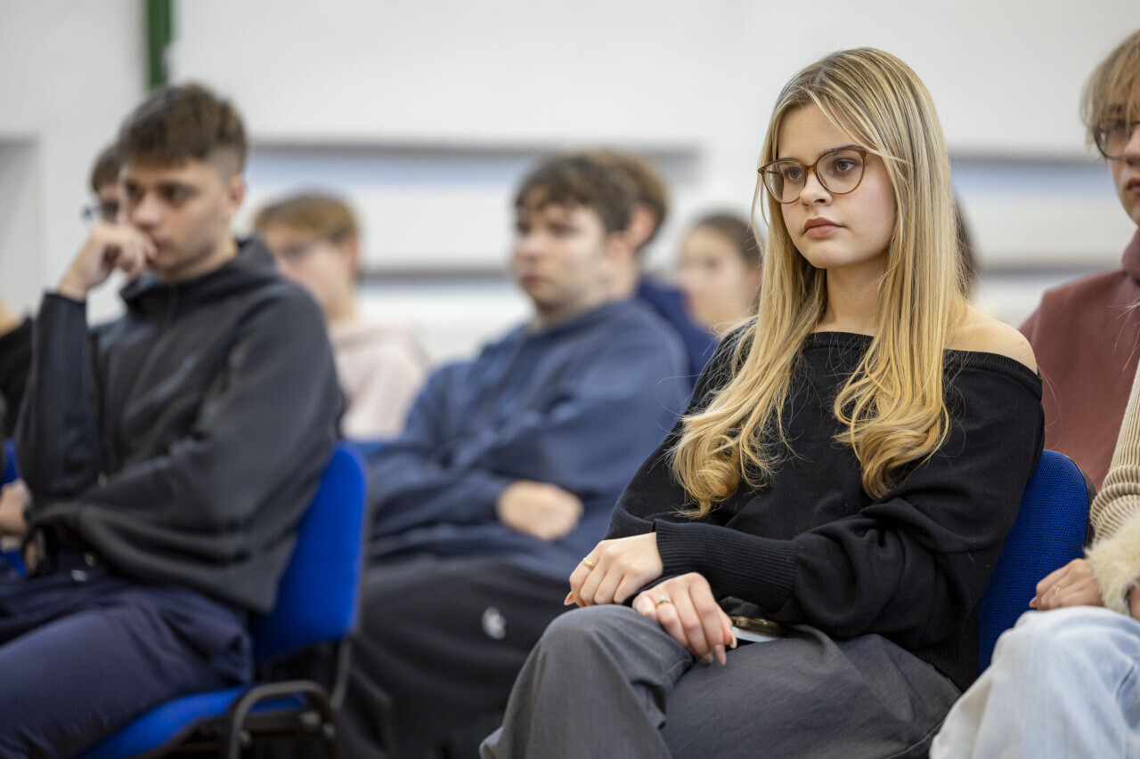 Gdańsk. W ramach Gdańskich Lekcji Obywatelskich Prezydent Aleksandra Dulkiewicz odwiedziła uczniów IX Liceum Ogólnokształcącego im. Krzysztofa Kolbergera.