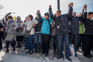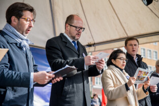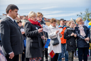 Gdańsk, Targ Węglowy. Gdańskie Święto Europy. Piknik europejski. Gdańsk w Europie, Europa w Gdańsku. Nz. Paweł Adamowicz Prezydent Miasta Gdańska, posłanka Małgorzata Chmiel, Piotr Grzelak Z-ca Prezydenta ds. polityki komunalnej, Piotr Kowalczuk Z-ca Prezydenta ds. polityki społecznej, radny Andrzej Kowalczys
