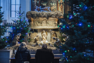 Gdańsk. Święta Bożego Narodzenia. Gdańskie Szopki Bożonarodzeniowe. Nz. bazylika św. Brygidy