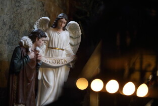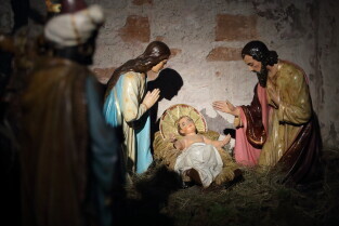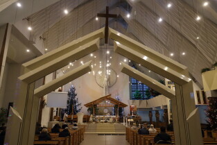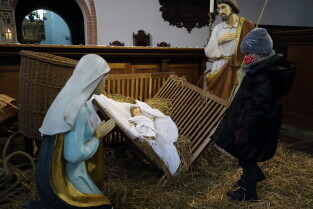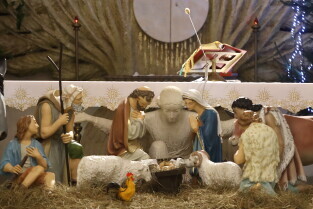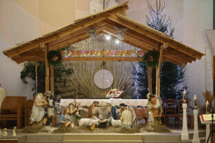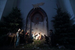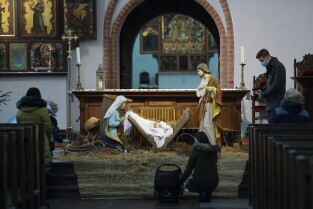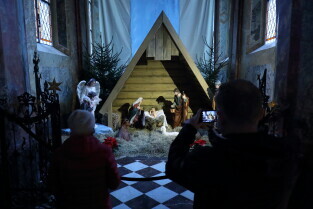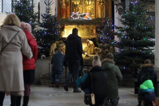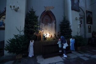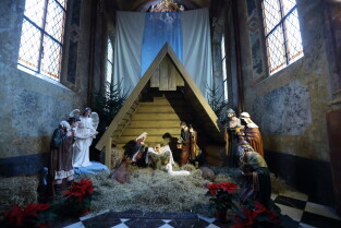 Gdańsk. Święta Bożego Narodzenia. Gdańskie Szopki Bożonarodzeniowe. Nz. Sanktuarium Matki Bożej Brzemiennej w Gdańsku Matemblewie.