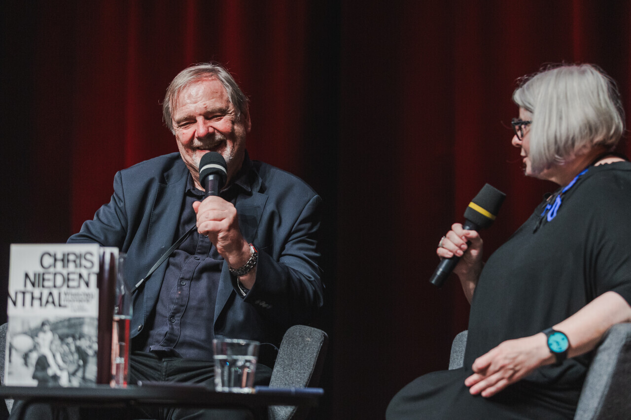 Gdańsk, ECS. Gdańskie Targi Książki. Nz. Spotkanie autorskie z Chrisem Niedenthalem i promocja książki pt.: „Właściwy moment. Pół wieku z aparatem”. Spotkanie poprowadziła Katarzyna Żelazek
