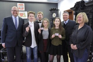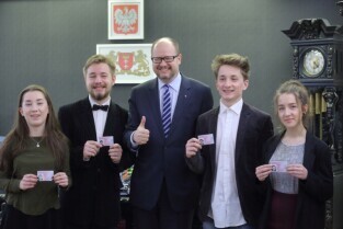 Gdańskie czworaczki - Adrianna, Klaudia, Michał i Patryk Szarmachowie - ukończyły 18 lat. Właśnie odebrały z rąk Prezydenta Pawła Adamowicza dowody osobiste.